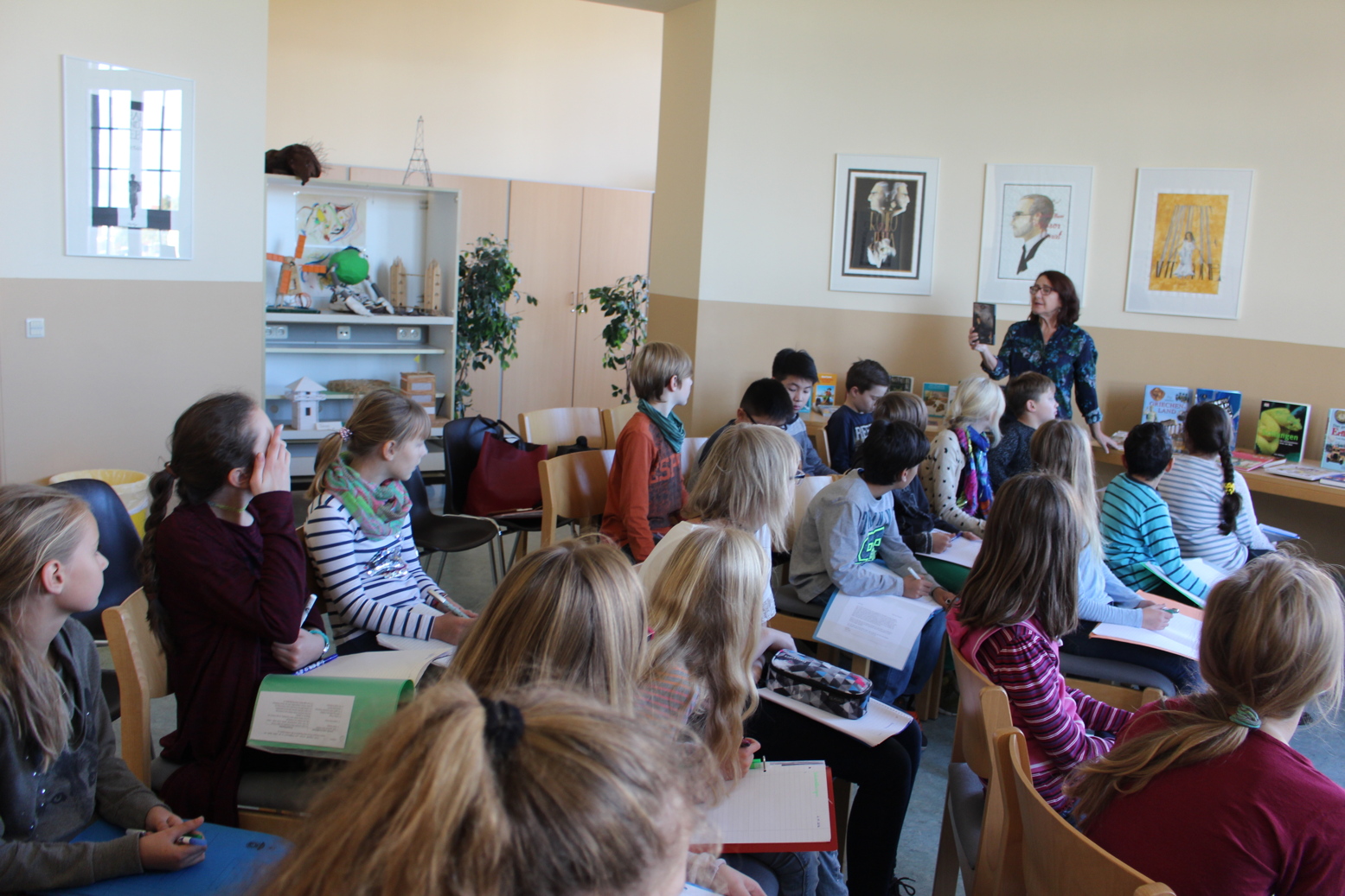 Am 2.11.2016 sind wir im Deutschunterricht zum Lesesaal gegangen. Dort wartete Frau Schnase aus der Bibiliothek auf uns. Wir waren eingeladen zu einer Buchvorstellung. Sie hat uns viele Bücher vorgestellt, z.B. „ Vampirschwestern“ von Franziska Gehm oder „Rubinrot“ von Kristin Grien und viele mehr. Es gab auch Filme, die sie uns vorgestellt hat. Mir hat es gut gefallen. Es war schön. Man hat viele neue Bücher kennengelernt.